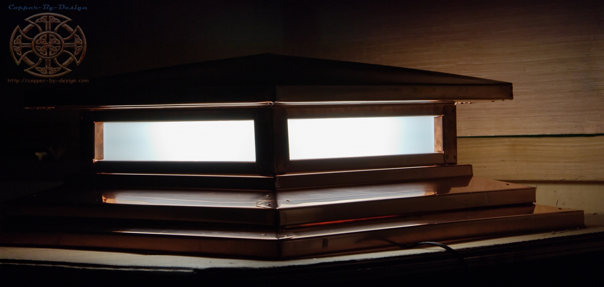 First off, I am not claiming to be an expert designer/fabricator of lanterns. I have helped design and fabricated these, trying my best to make them sturdy and look decent. We follow the specifications given to us by our Clients, and I make some suggestions to improve their durability, function, and looks. Lanterns can be made with just 20oz copper, but it is recommended to build these with a sturdier 32oz and or 48oz copper for better durability and dent resistance. The edges are carefully sanded smooth, so they have no rough or sharp edges exposed. These are made to make sure the soldered seams do not leak rainwater, but we cannot guarantee they will meet you desired light effect, as there are a lot of different factors that need to be worked out before fabrication and after installation to adjust the flow of light. Any amount of testing beforehand is important to the success of these water-features. Before making these in copper they can be formed in a cheaper metal or plastic to test the action you will be getting. They would need to be hooked up at your location with what electrical codes for your area and application, since I am not allowed do the installation myself. Beside the look of the housing, here are some of the details that need to be worked out, which can vary this action seen in place: