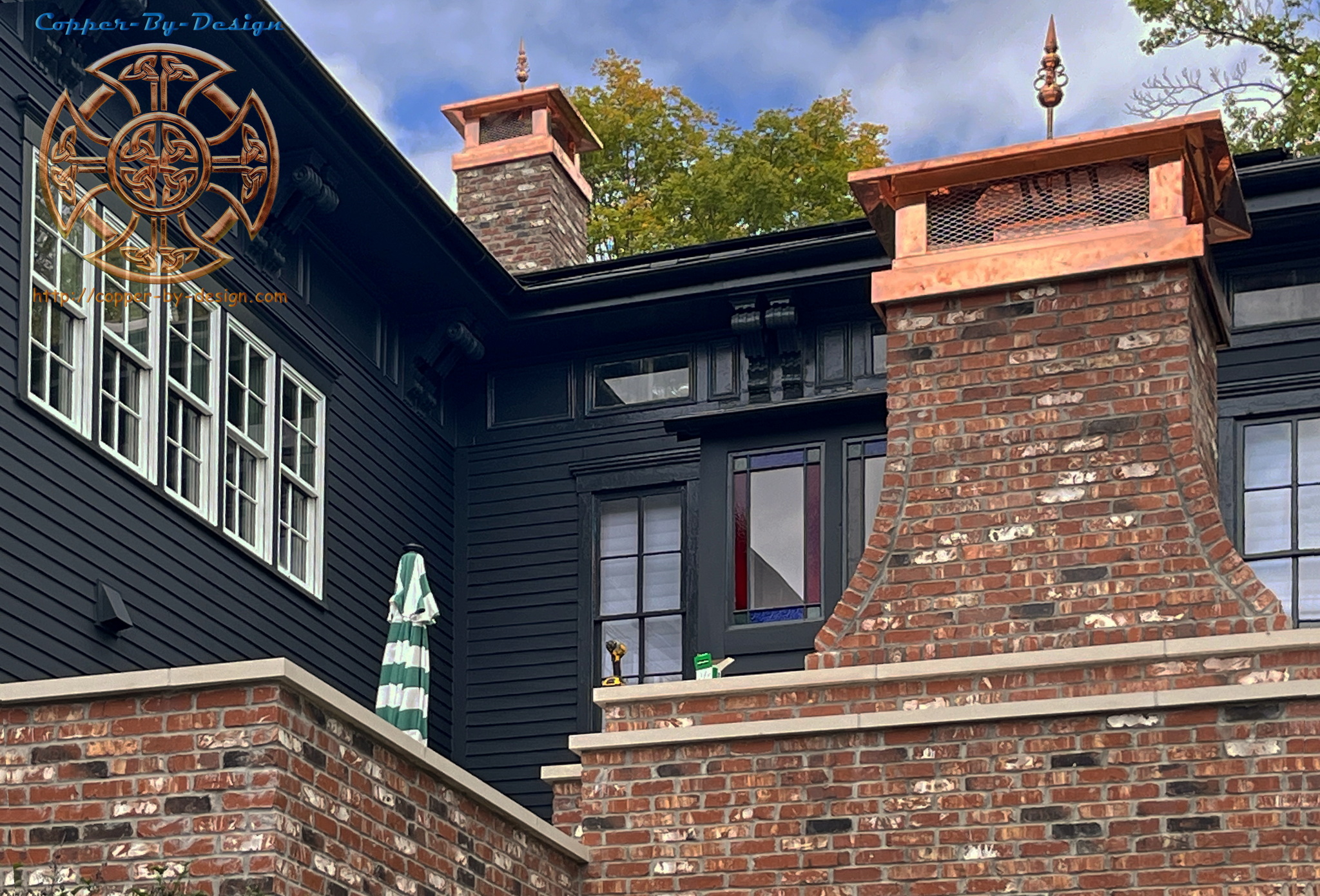 Jason Hendricks of Carpenters Crew out of Pittsboro Indiana had contacted me on 5/23/23 about this project. We worked out the details and were able to start building these on 4/24/24. The cost with crate and truck freight is $18k for all 4 chimney caps. Follow this link to see our business Facebook album with 118 photos and detailed descriptions of this project. |