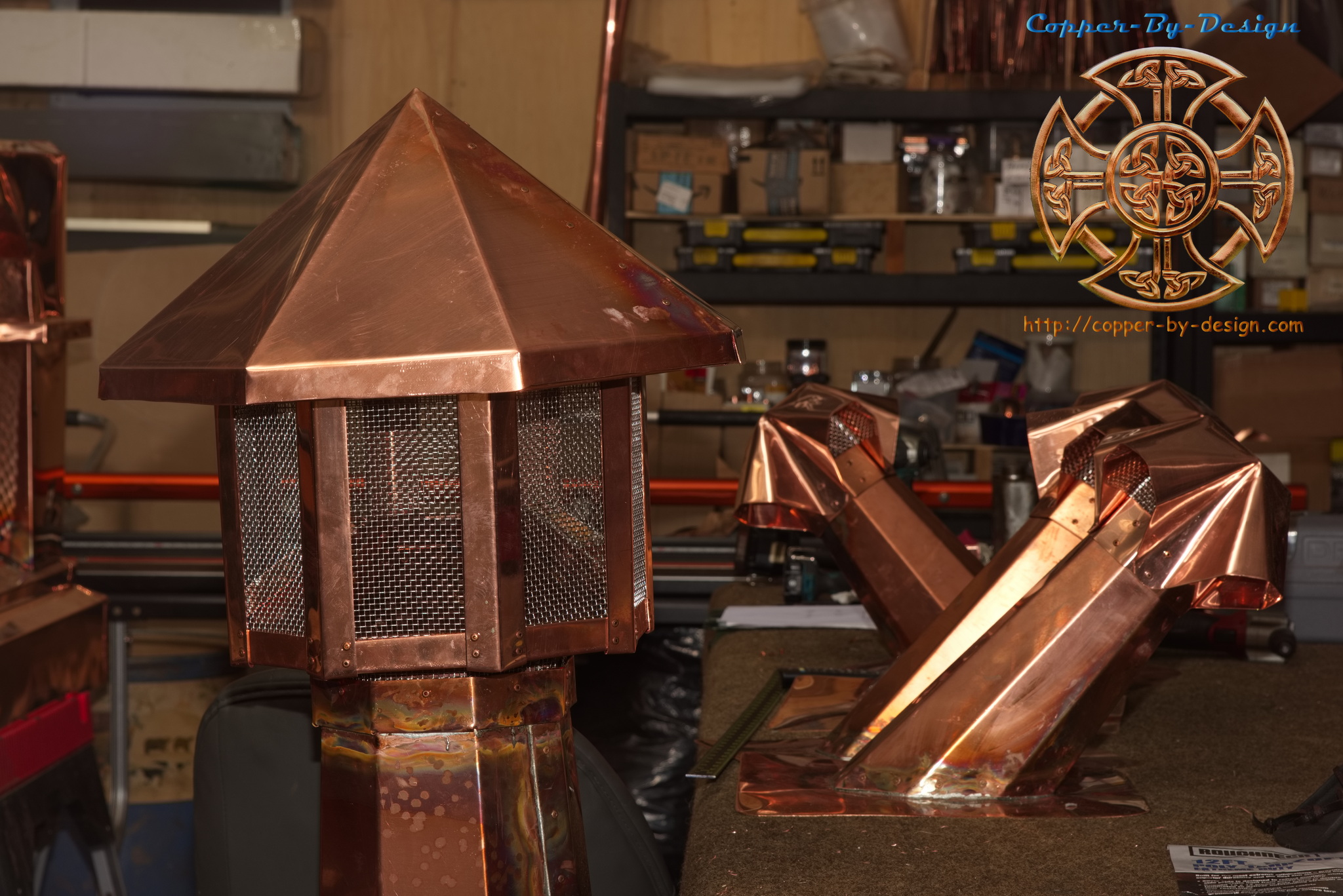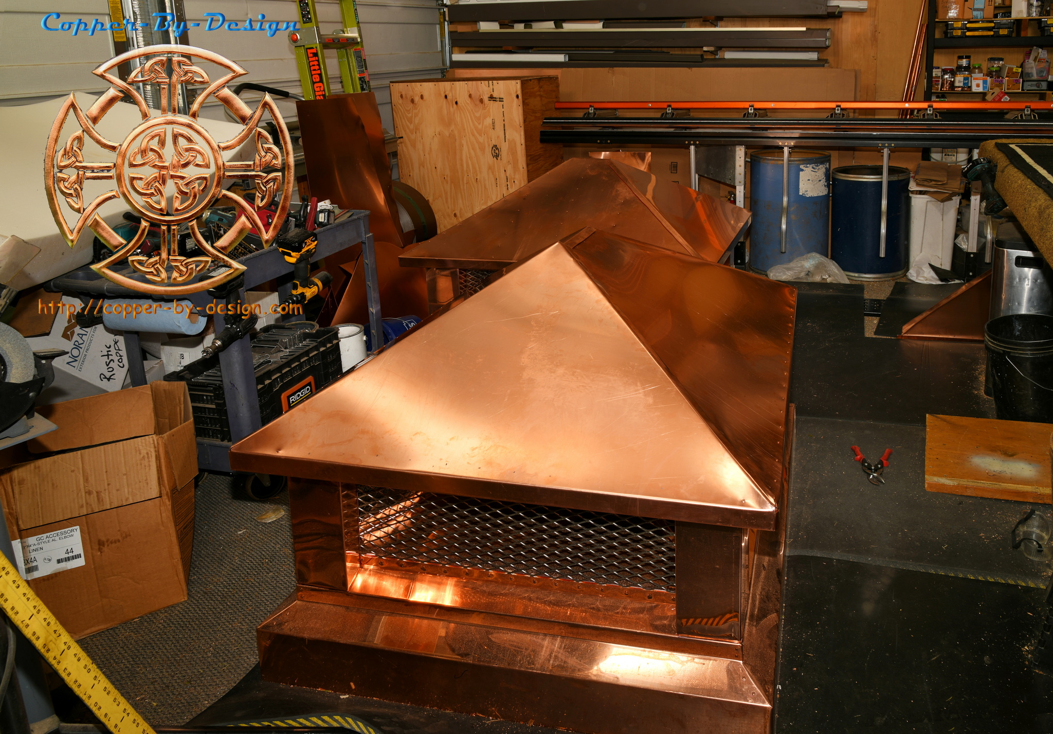 Andrew & Lisa Williams in NOLA had contracted with me to build them a pair of custom copper chimney caps and the flashing kits for around the base. This client opted for a thicker 32oz copper roof-skin to help resist dents from severe hailstorms. This project ran $13k delivered.