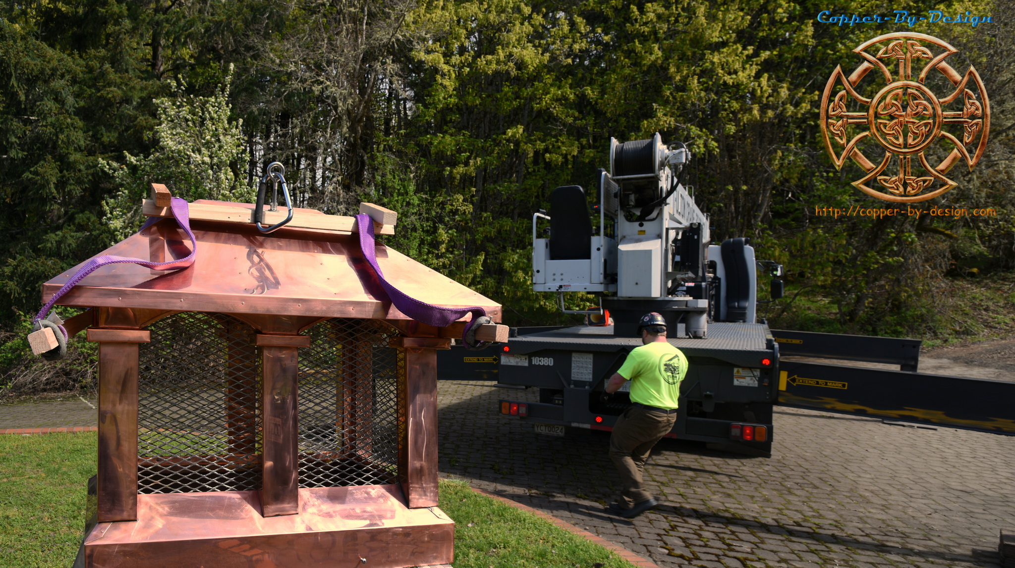 Cost Breakdown: Smaller Cap w/roof liner: 62.2# total weight - 14.1# wood weight - 4.2# SS screen weight = 43.9# total copper weight X 0.8 = 35.12 sq' of 20oz copper in this X $30 per sq' = $1,053.60 for the copper + $110.80 for 5.54 sq' SS screen + $126.60 for 8.44 ln' of wood = $1,291 subtotal Larger Cap w/roof liner: 92.8# total weight - 20.6# wood weight - 6# SS screen weight = 66.2# total copper weight X 0.8 = 52.96 sq' of 20oz copper in this X $30 per sq' = $1,588.80 for the copper + $157.40 for 7.87 sq' SS screen + $175.35 for 11.69 ln' of wood = $1,921.55 total for the larger chimney cap + $1,291 for the smaller chimney cap = $3,212.55 grand total for both chimney caps w/o crate or freight The new taller chimney cap in 2024 with installation cost $6,170.42, including the new top for the smaller chimney cap and the crane operator's fee of $675. Follow this link to see our business Facebook album with 158 photos and detailed descriptions of this project. |