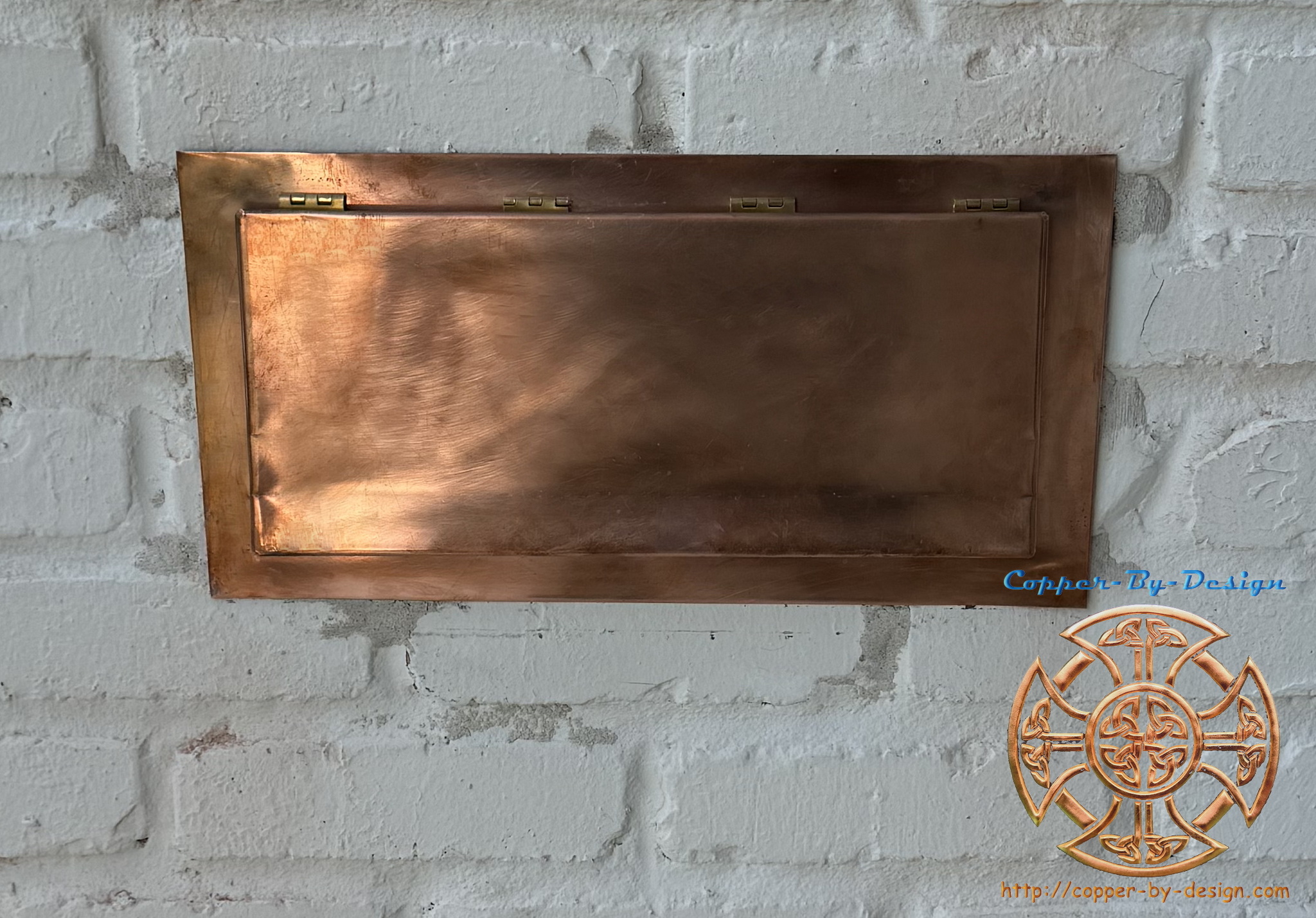 freight. These are more functional works of art, made to last, stronger, better solid brass hinges, and durable outgoing mail flag. Best of all is how it makes you smile each time to go to check the mail. It's like getting a vanity plate for your car. It's totally unnecessary, but can be fun to bring a little joy each day. (my SUV plate says 'COPPER', & Tia's EV has 'GHOSTS' on it) My main philosophy is: why use a life-time metal like copper if it is made with thin flimsy metal? Below are the list of detailed advantages of what I have designed and built for our clients and myself, along with making a custom wood crate with padding. I believe in over engineering, trying to build things sturdy and made to last. Better Health: Especially in these modern days of pandemic concerns, a copper mailbox is going to remain by far more germ-free than most other metals or plastics commonly used. As long as the copper is left raw; exposed to the elements and allowed to develop a nice deep patina. Not covered with a paint or clear coat. This is best for your health and that of your mail carriers, whom may be transferring germs to all the houses on their route. Better Strength: I make mailboxes that are much sturdier with a minimum thickness of 0.032", which is 24oz copper, or thicker upon request. Built with better solid brass hinges, and improved features not found elsewhere. To use 32oz copper for this would make it about twice as strong as 24oz copper, at just 33% more copper used. The 0.063" 48oz copper is just twice as thick, yet over 6X stronger, and can even possibly resist the impact of a baseball bat. Colder regions have suffered regular damage from the effect of snowplows blasting their mailbox over and over again, so this should help. There's also some swing-away mounts to minimize that type of severe impact. I even saw a mailbox hanging from a pair of chains. Note: A well built copper mailbox will still not be able to resist the impact of a car or delivery truck smashing into it of course. Not even a brick mainbox enclosure with reinforsed steel bars could resist that kind of abuse. There are several clever ways to make a swing-away mounting system to help minimize the damage from an impact. Placing a lazy-Suzan bearing in the back, with a spring-ball friction latch in front can do this without changing the apearance or having to build a whole new mounting post. Better Designs: The traditional curved arch top style mailbox that is commonly seen (covered-wagon style) is a very clever simplistic design with minimal seams. That is just one of the most efficient designs to use the least and thinnest sheet metal possible with a reasonable amount of strength and a fairly simple fabrication. That does not mean it is the best design, or required by USPS. Their are some basic requirements for the placement and height, but the shape is not one of them. You are not even limited to just these designs shown below. These are just a few examples of what CBD can do for you. Feel free to request a custom size and style that you want, along with your custom address numbers mounted. Larger Size: The traditional standard size for most mailboxes seems a bit small to me, so I like a larger container, so things like magazines and larger envelopes do not have to be folded in half in order to stuff them inside. Not to mention small packages. A standard mailbox is just 6.5"W X 9"T X 19"D. I have not made one of these less than 9.5" wide, which is about 50% wider. More like a rural size mailbox. |